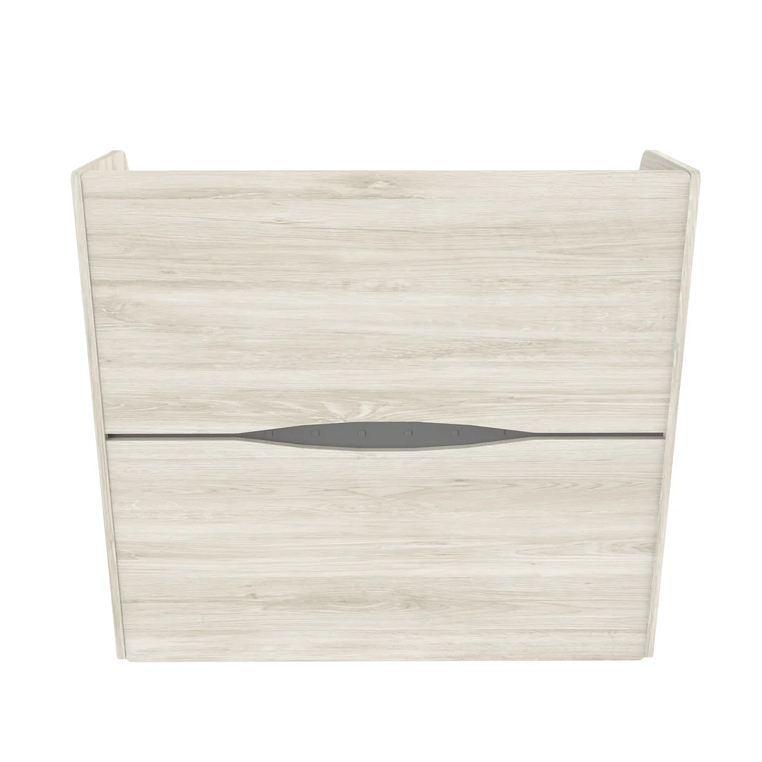 Recepción con cubiertas en tablero de partículas de madera estándar de 19 mm con densidad equivalente al MDP,resistente a impactos de 10 newt/cm2. Resistencia de abrasión de 250 CLS, resistencia PDM estrés n-mm2 entre 2 y 30 newton/mm2, recubrimiento por ambas caras con papel decorativo saturado con resinas melaminicas. Laminado en baja presión termo fusionado al tablero acabado texturizado bajo los estándares de inspección continua (MCIE). Terminadas con cubre cantos de PVC 1mm semi rigido de alta presión y TFM flex-curve, acabado laqueado, superficie posterior cóncava. Resistencia al impacto de 100 lb flexibilidad del 32 % elong, regatòn nivelador. Sistema de ensamble sin requerimiento de herramientas, basado en un dispositivo de unión auto sujetable, que permite un ensamble fácil y resistente que cumple con las pruebas (EEM) para armado y desarmado sin perder estabilidad.