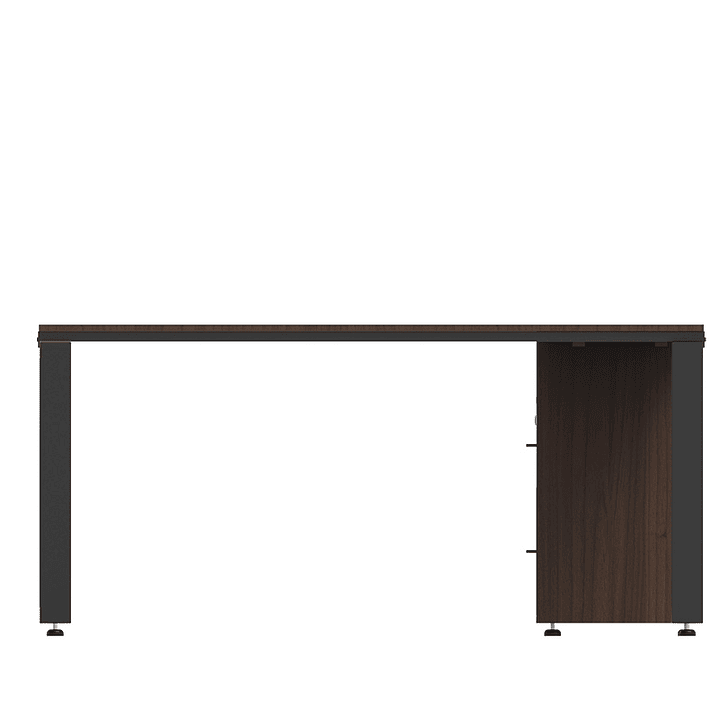Cubierta fabricada en melamina de 16 mm, con canto rigido en PVC al mismo tono de la cubierta, estructura metalica en tubo rectangular en patas y largueros en tubo rectangular , terminado en pintura epoxica electroestatica en color negro, niveladores para evitar ralladuras.