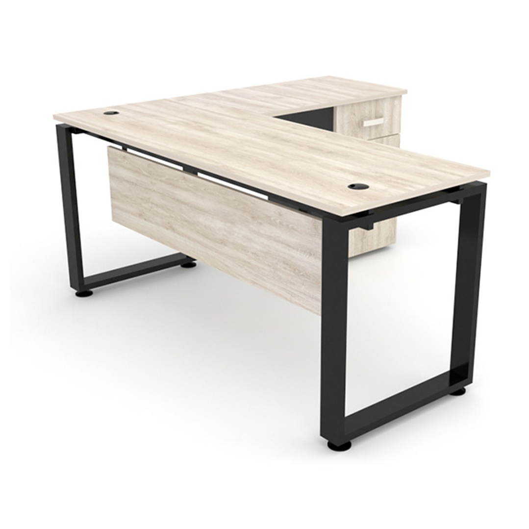 ESCRITORIO RECTO FABRICADO EN MELAMINA , PATAS METÁLICAS EN PERFIL TUBULAR RECTANGULAR CON ENSAMBLES , ACABADO EN PINTURA ELECTROSTÁTICA COLOR BLANCO, NEGRO O GRIS Y NIVELADORES.
