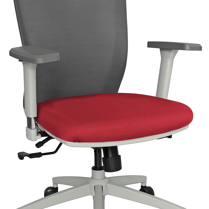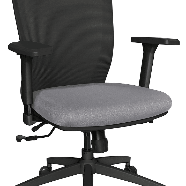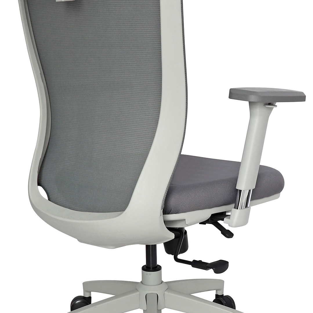 Respaldo en malla color gris de diseño ergonomico con cabecera y asiento tapizado en color de su eleccion