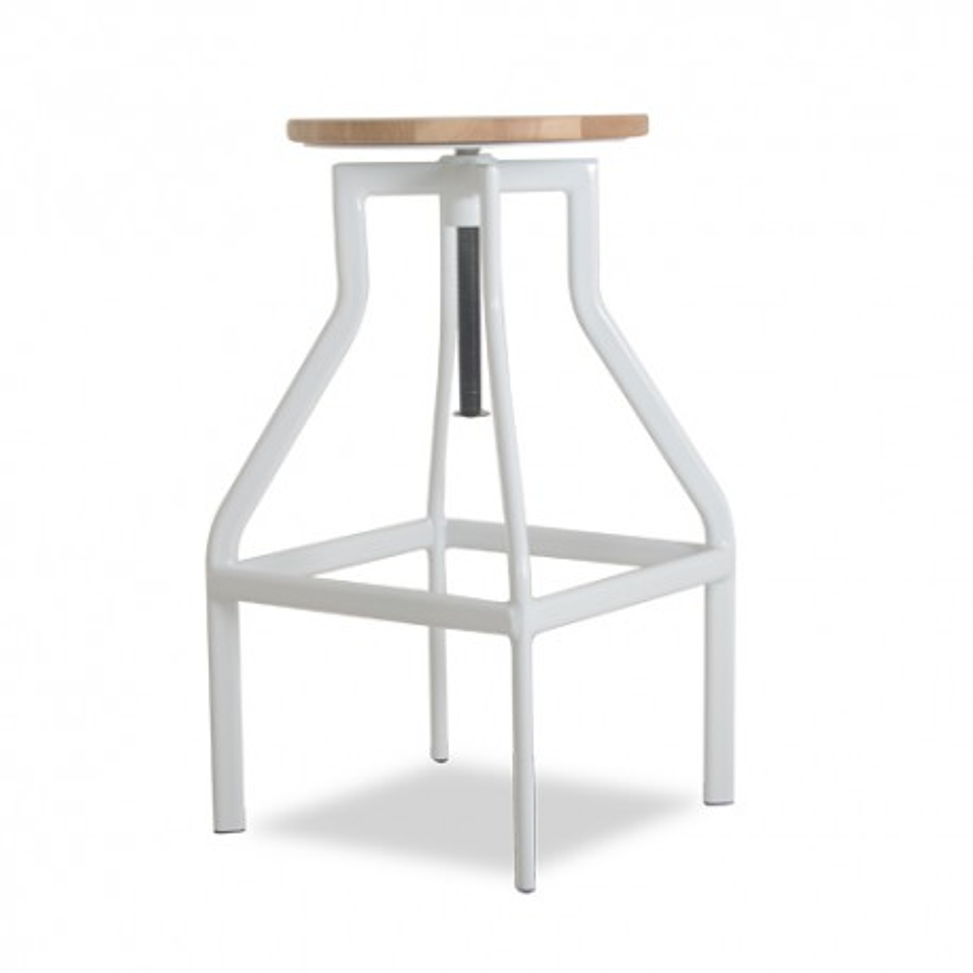 Banco con estructura en acero pintura horneada color blanco o negro y asiento en madera redondo con altura ajustable