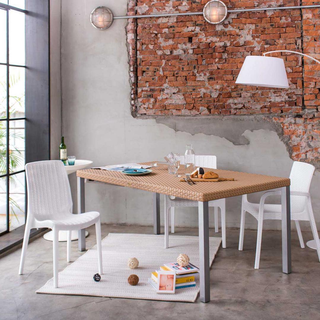 El material con que se fabrican es polipropileno de alta calidad, en terminado tipo rattan, para brindar una belleza de artesanía tradicional, con nueva actitud de diseño.
