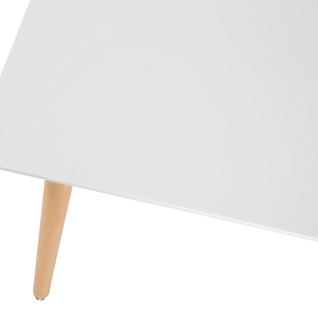 Mesa rectangular, fabricada en MDF con melamina , patas de madera y soportes metálicos.