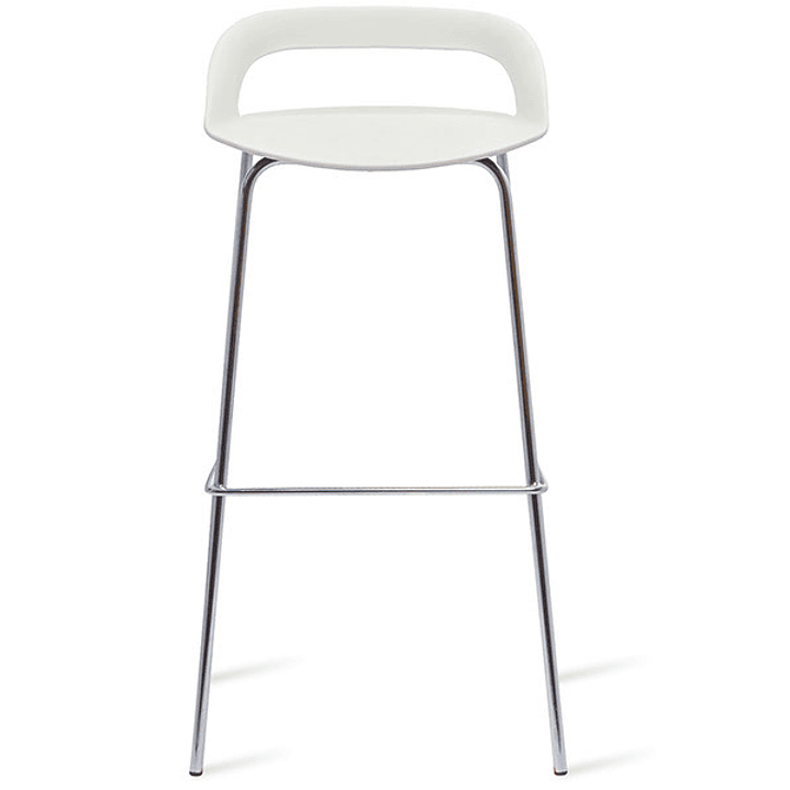 Banco fijo asiento en plastico color blanco o negro y base en cromo