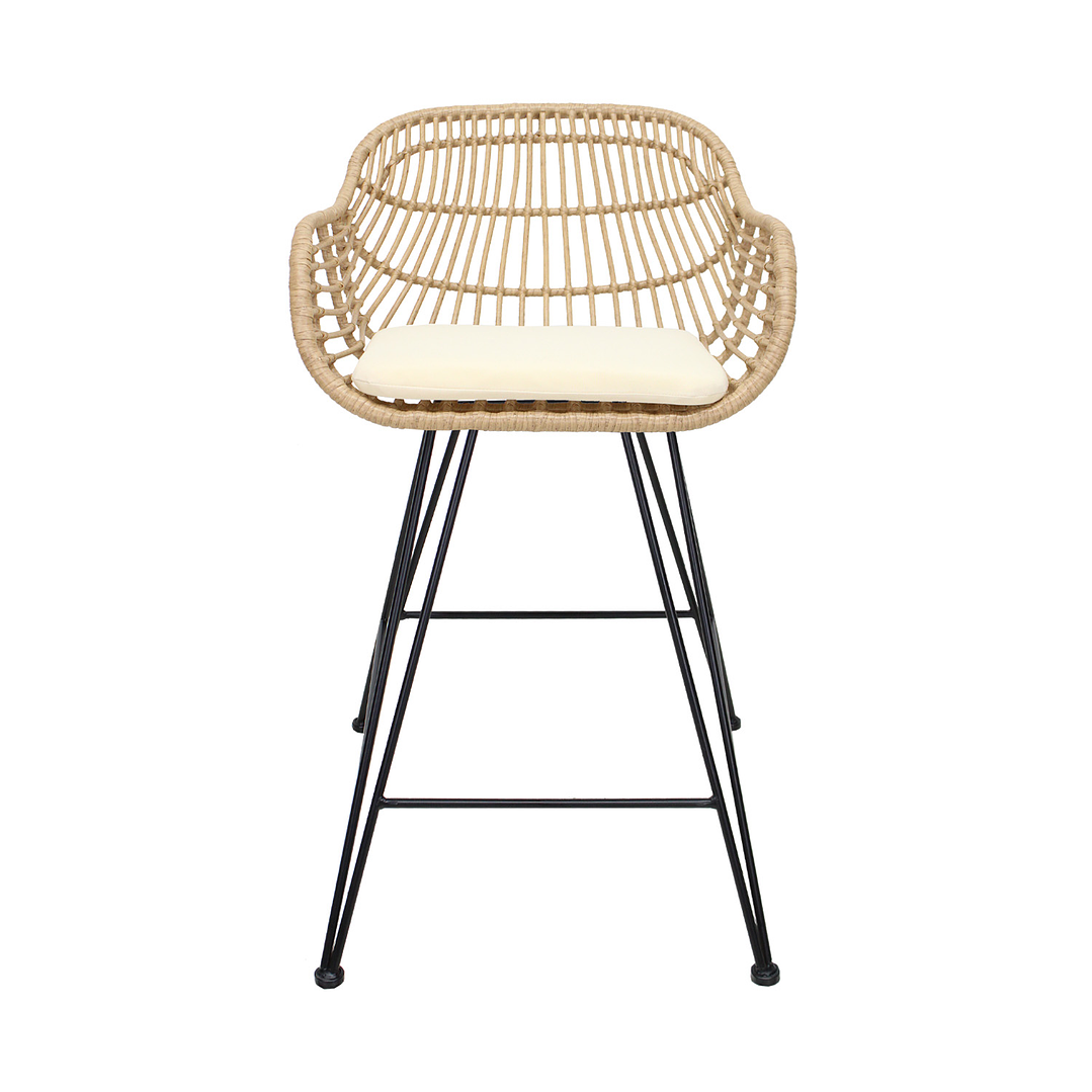 Banco de ratan syntetico para interior o exterior con estructura de acero pintado en color negro