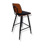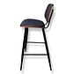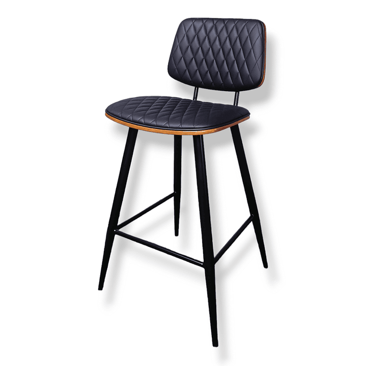 Banco de madera moldeada nogal , tapizado en piel PU Capitonado negro , con base y posa pies en acero Negro , patas en metal negro