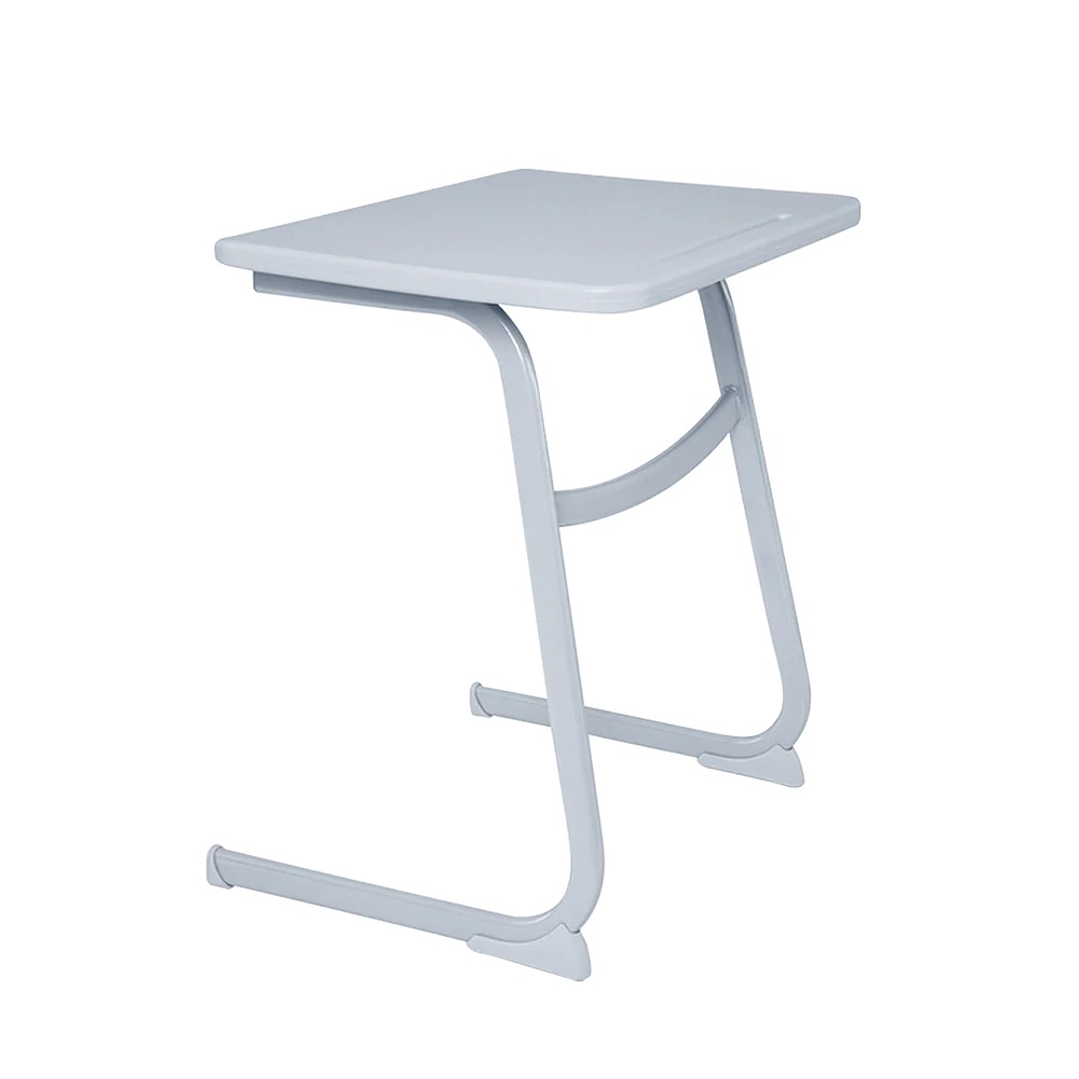 Mesa Individual con una medida de 60 x 50 y 29″ con una base de trineo con terminación color gris y sus regatones.