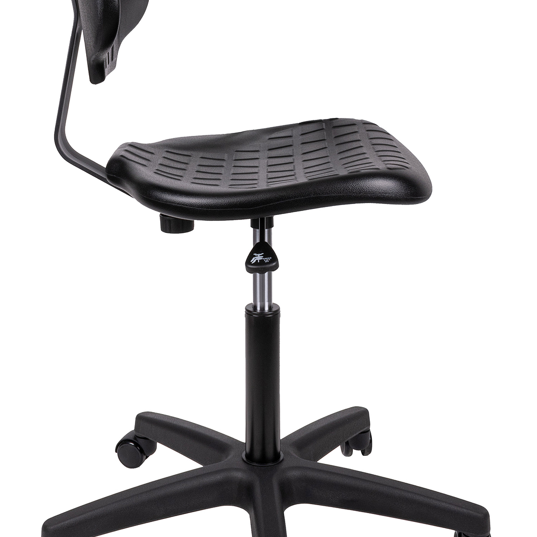 Silla operativa con diseño ergonómico asiento y respaldo en poliuretano, modelo secretarial, con cubierta telescópica. base de Nylón, ajuste de altura y profundidad de respaldo