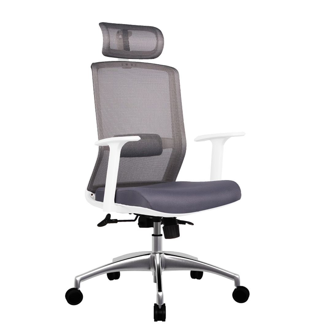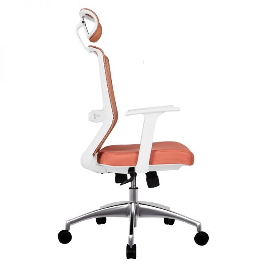 BRAZO DE POLIPROPILENO FIJO COLOR BLANCO, RESPALDO CON CABECERA AJUSTABLE, SOPORTE LUMBAR CON AJUSTE DE PROFUNDIDAD RESPALDO DE MALLA DE POLIÉSTER, ASIENTO DE HULE ESPUMA DE 24KG/M3.