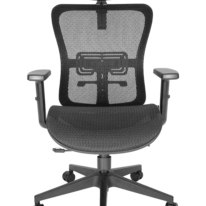 respaldo: en malla de diseño ergonómico con soporte lumbar y cabecera ajustable con sistema flotante.