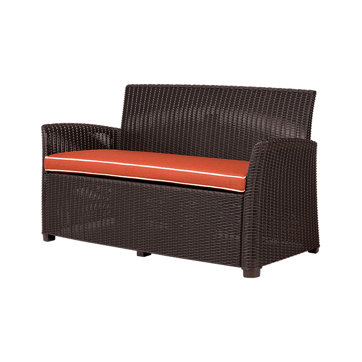 Sillon 2 Plazas en polipropileno de alta resistencia y duración para intemperie e interior, resistente a los rayos ultravioleta (UV) y al ambiente salino con terminado en imitación rattán