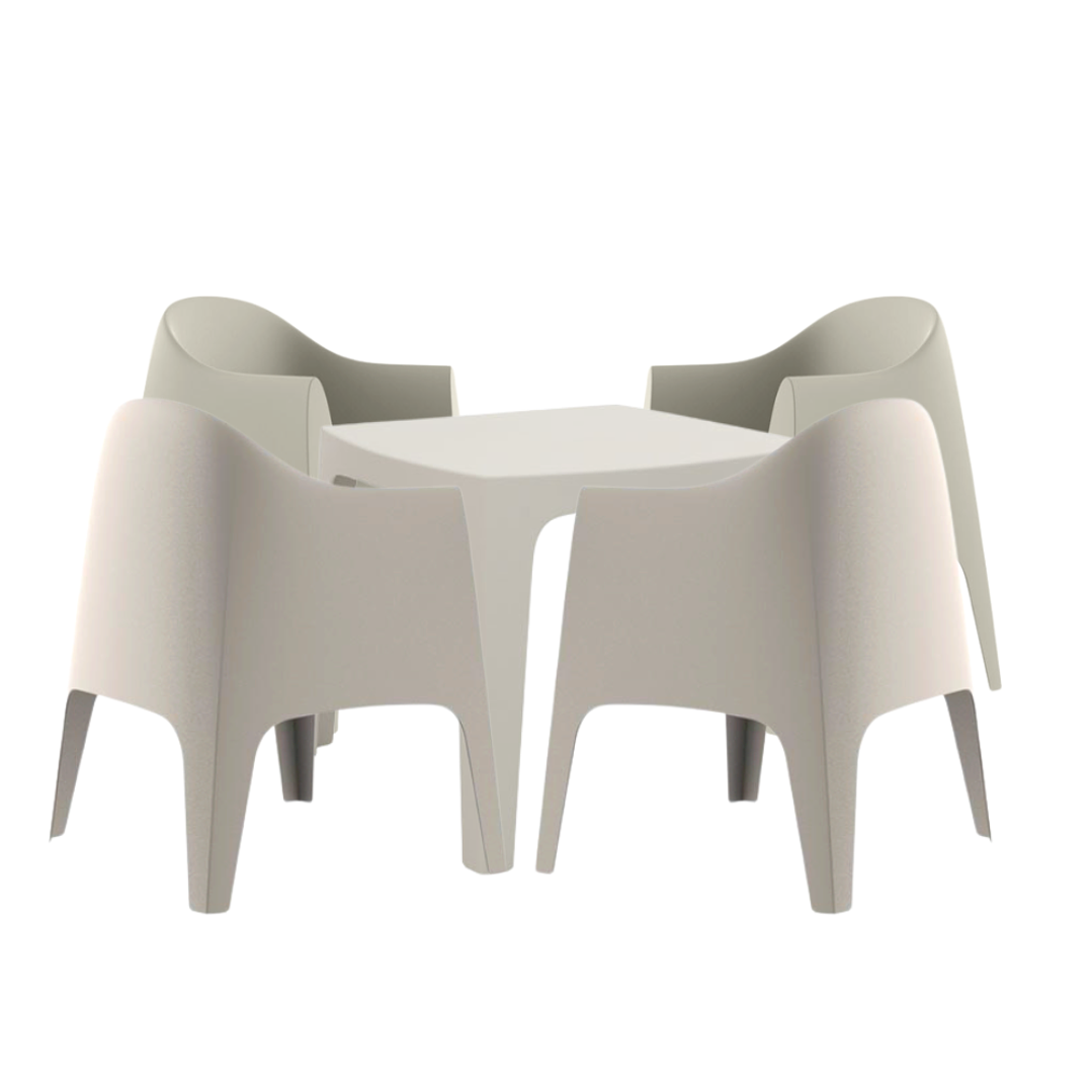 Fabricado en polipropileno inyectado con aditivos minerales. Apilable.