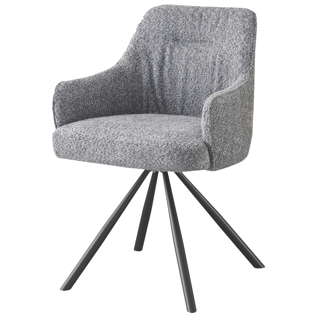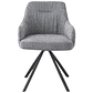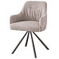 silla tapizada en tela de lino grueso y con patas de metal en color negro.